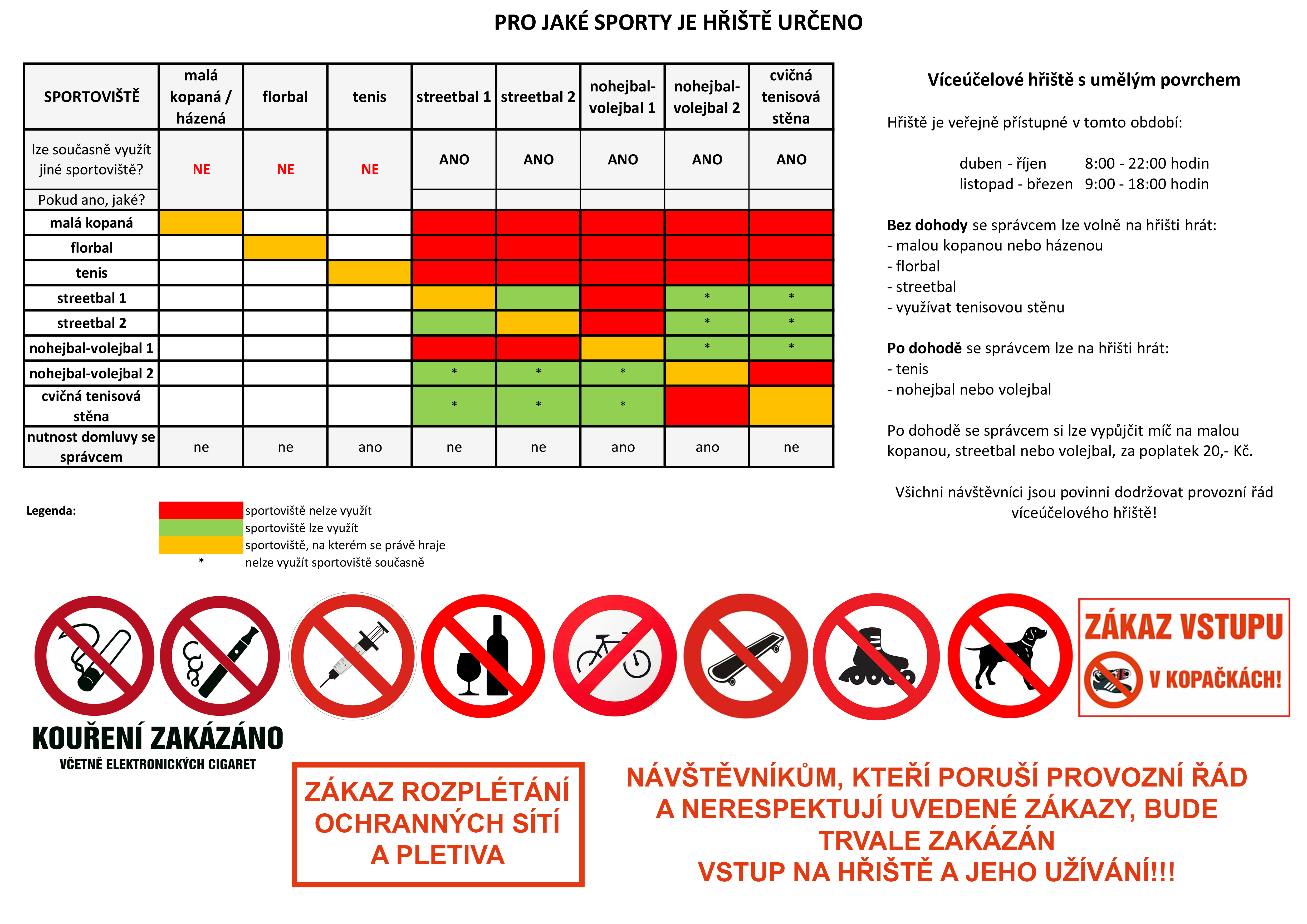 Před vstupem na hřiště je nutné seznámit se s provozním řádem.